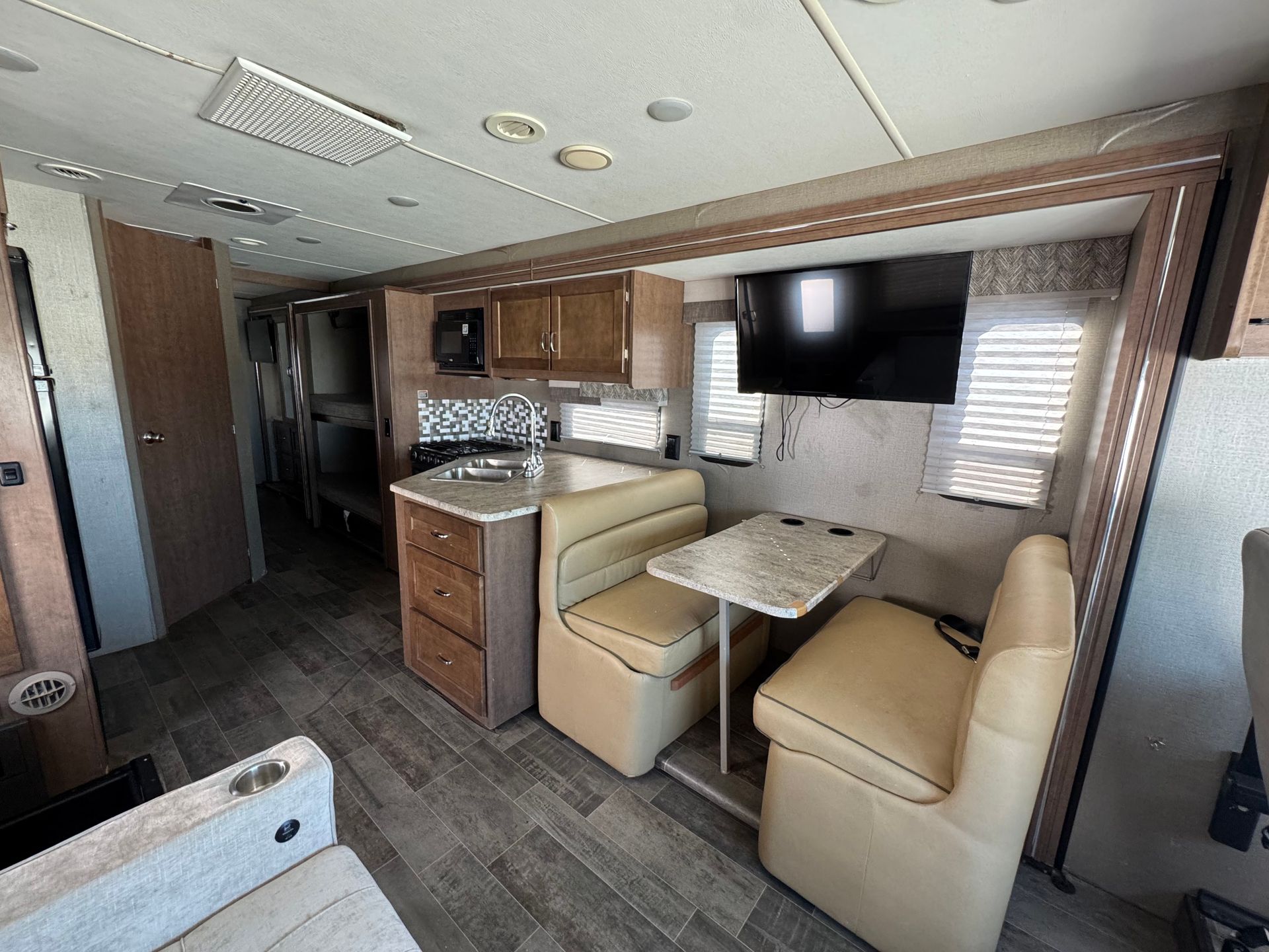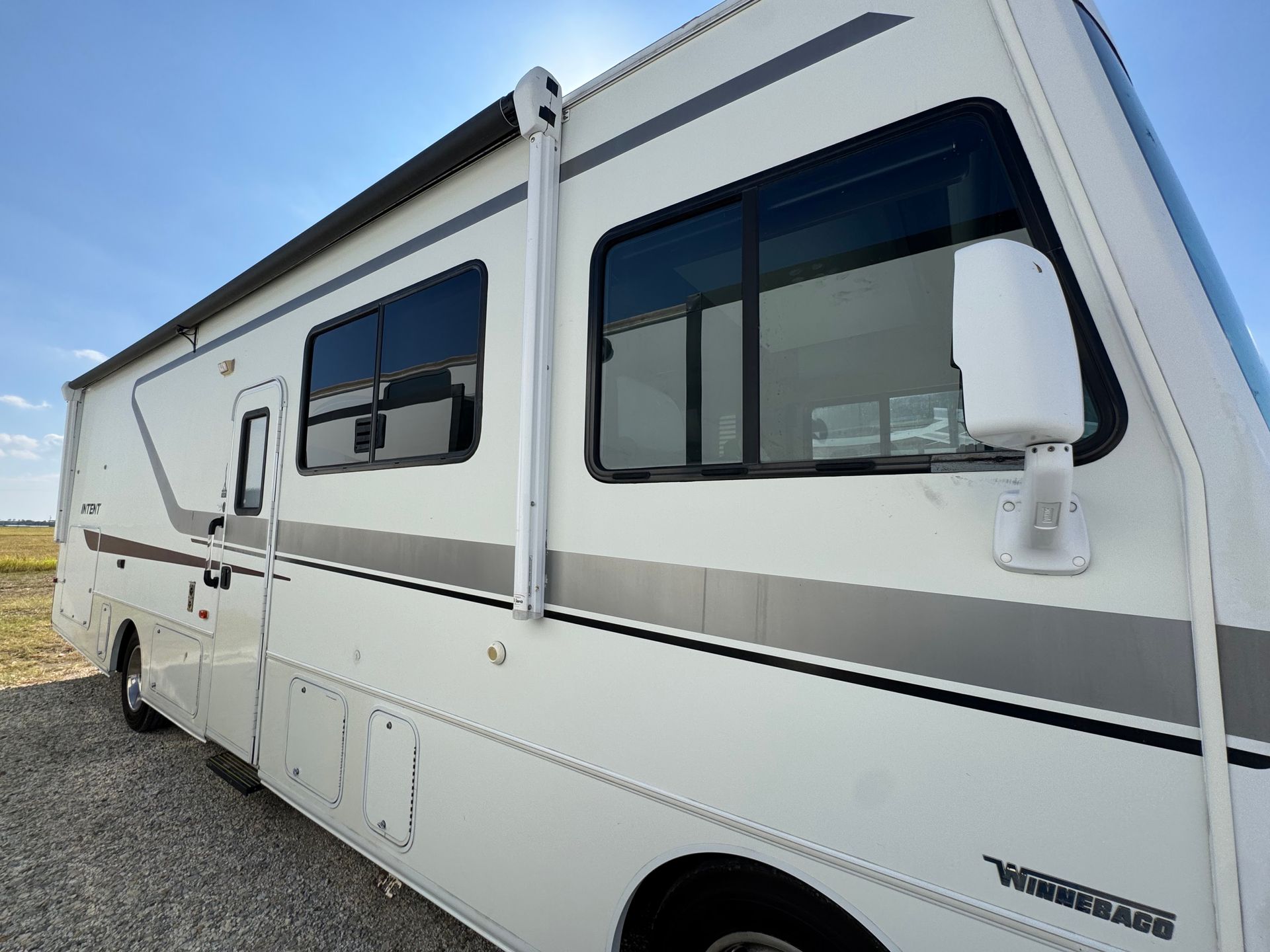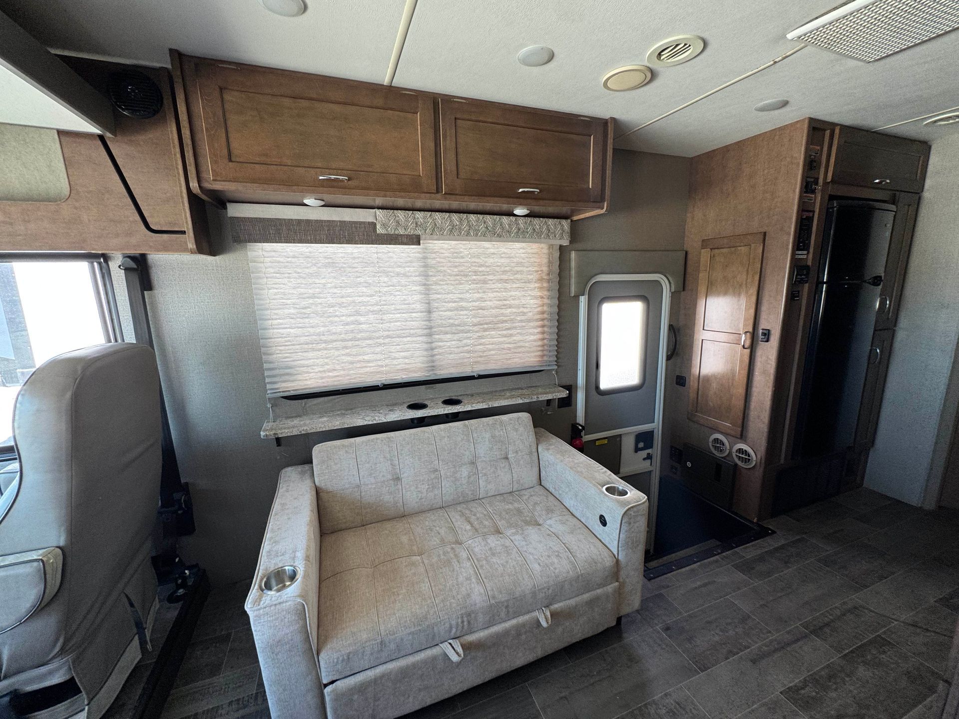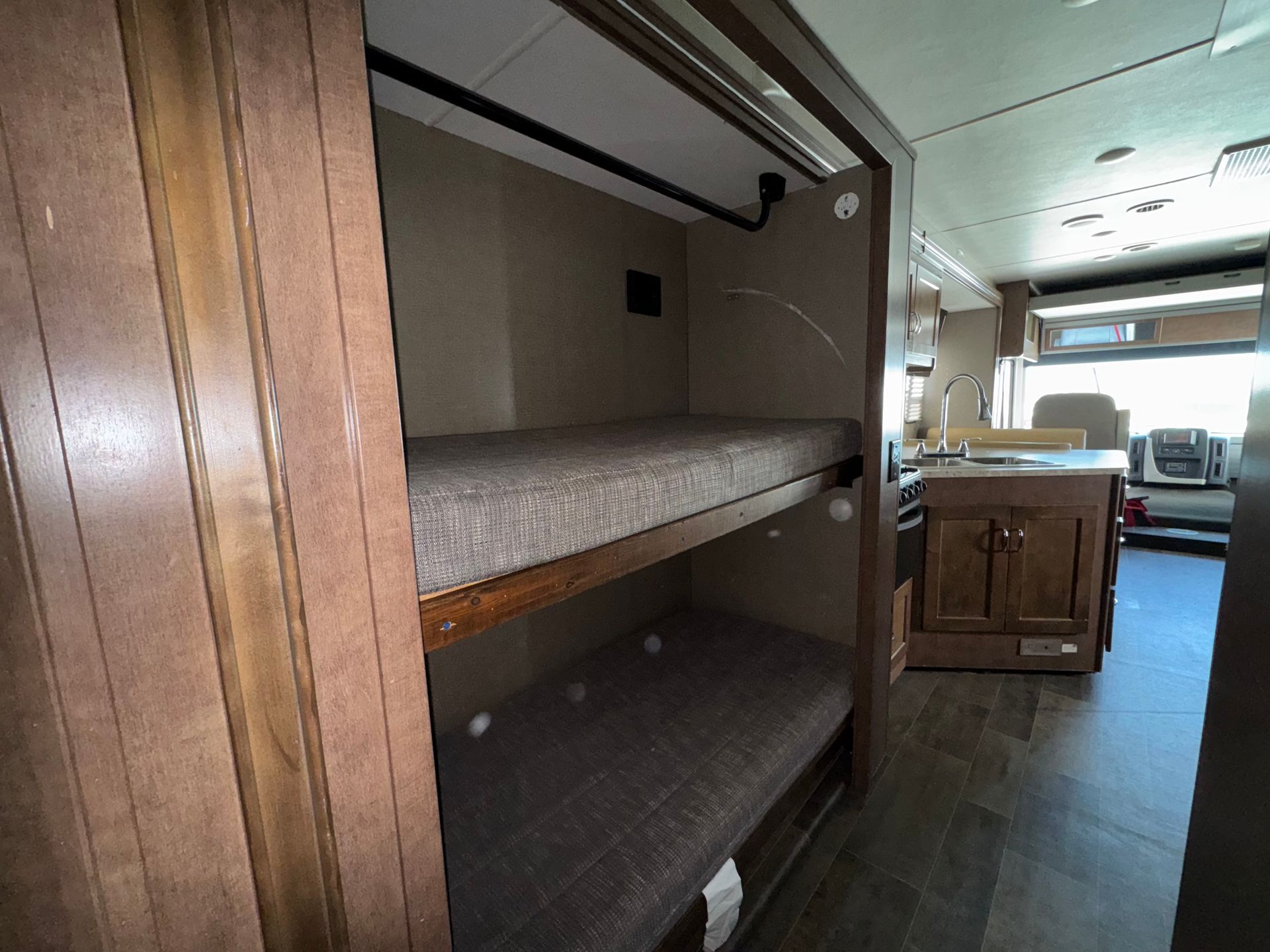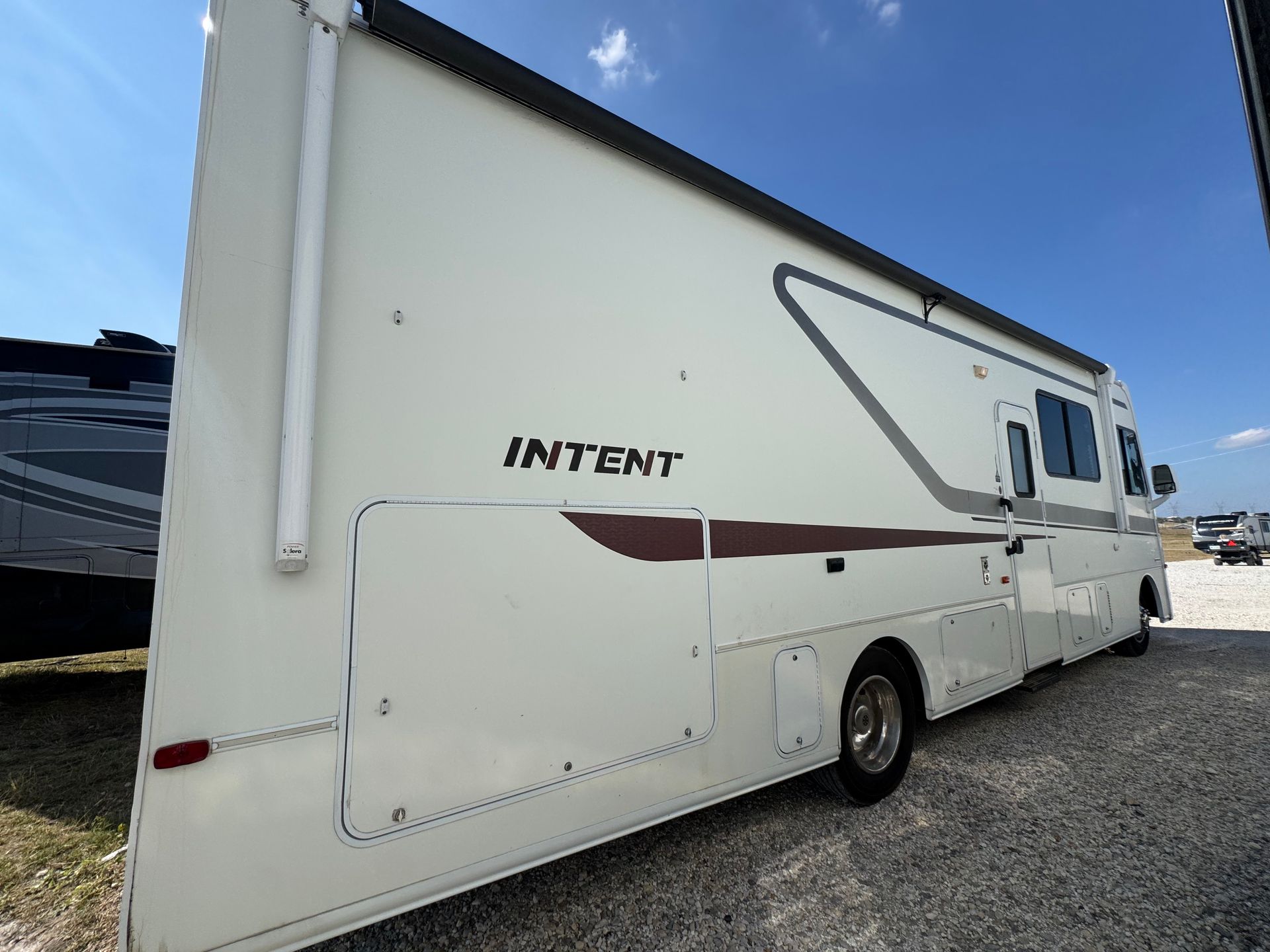 The 2018 Winnebago Intent 31P is a renter-friendly Class A motorhome that delivers the perfect balance of comfort, space, and ease of use. Its roomy interior features a full-length slideout, creating an open living area with a sofa, dinette, and a well-equipped kitchen that feels like home on the road. With bunk beds, a drop-down overhead bunk, and a private queen bedroom, it comfortably sleeps large families or groups without feeling crowded. Renters will love the generous storage, spacious bathroom, and large windows that bring in plenty of natural light. Outside, the power awning, exterior TV hookups, and simple campsite setup make relaxing outdoors just as enjoyable as the comfort inside.