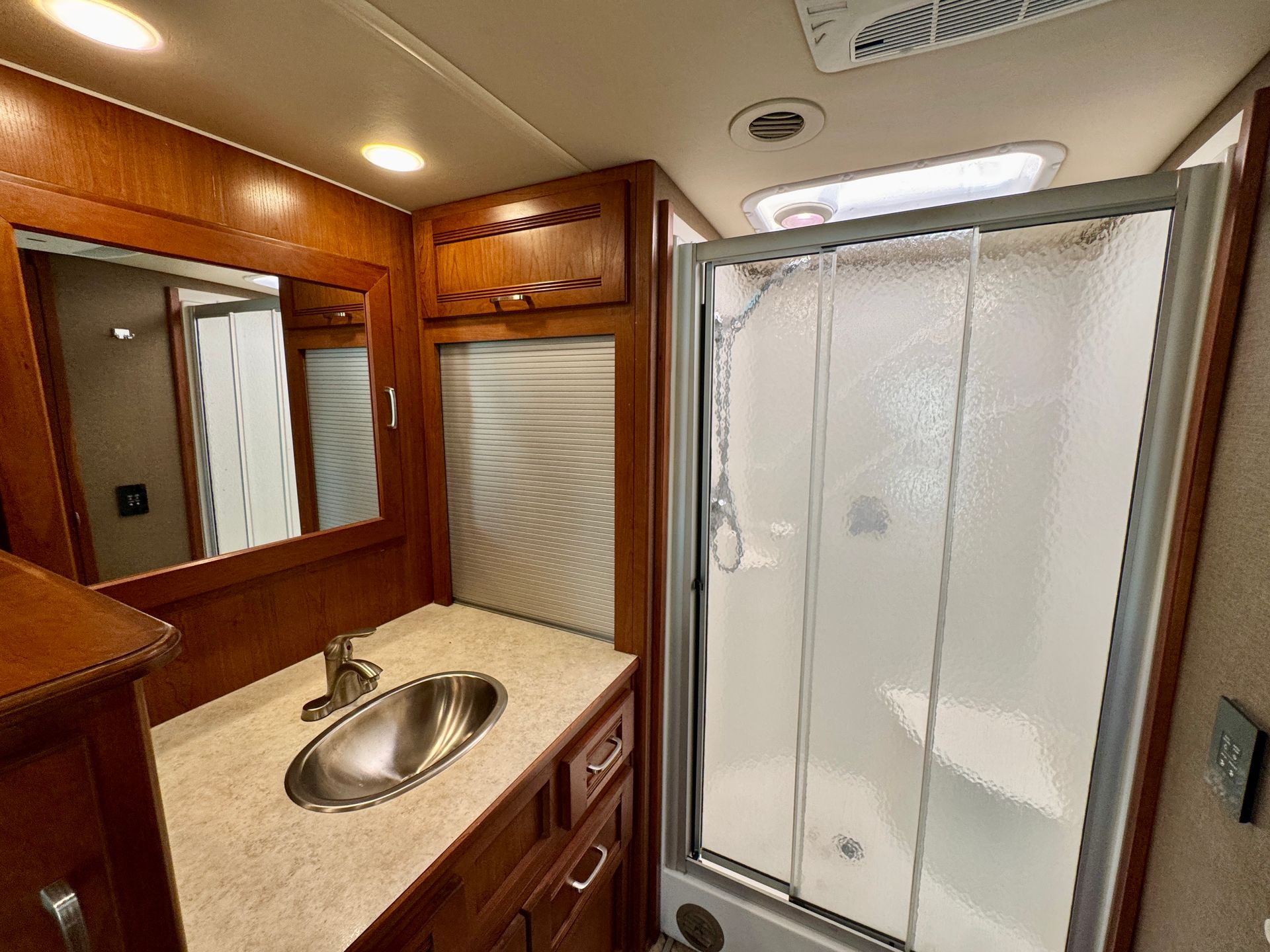 Luxury at your disposal! This absolutely gorgeous Coach is available for delivery. Perfect for entertaining or spending a relaxing weekend at the lake or perhaps watching a race at Circuit of the Americas. King bedroom and full bathroom, spacious and open with 4 slide-outs. A/C and heat.