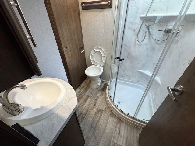 The 2021 Forest River Sabre 37FLH offers a luxurious and spacious layout, designed for comfort and convenience. The front living area features plush seating and a large entertainment center, perfect for relaxing or entertaining. The private master bedroom comes with a king-sized bed and ample storage. The kitchen is fully equipped with modern appliances and plenty of counter space, ideal for preparing meals on the go. The full bathroom offers all the essentials for a comfortable stay. With multiple slide-outs and an open design, the Sabre 37FLH provides an inviting, home-like atmosphere wherever you travel.