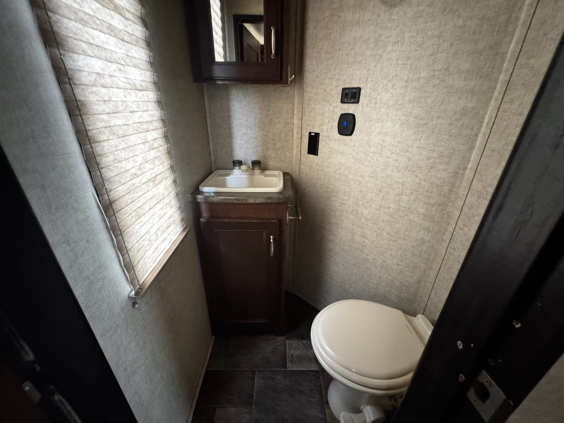 This 33-foot Cougar 28SGS fifth wheel offers an open living area with a private queen bedroom for comfort and privacy. The full kitchen is well-equipped with ample counter space and storage, while the full bathroom provides all the essentials. The living area includes cozy seating and a TV with a fireplace, perfect for relaxing. Slide-outs create a spacious interior, making this fifth wheel ideal for both long stays and weekend getaways.