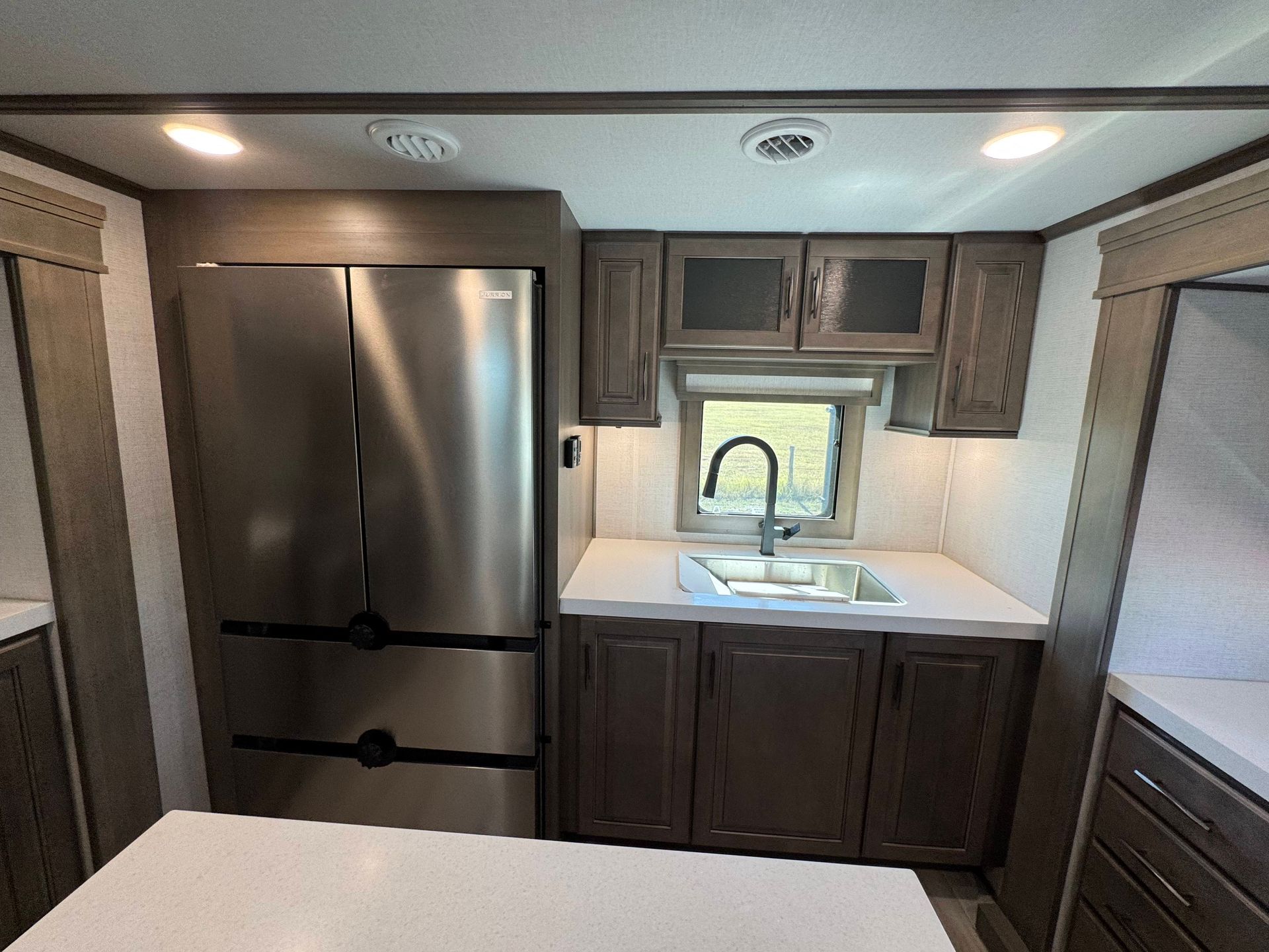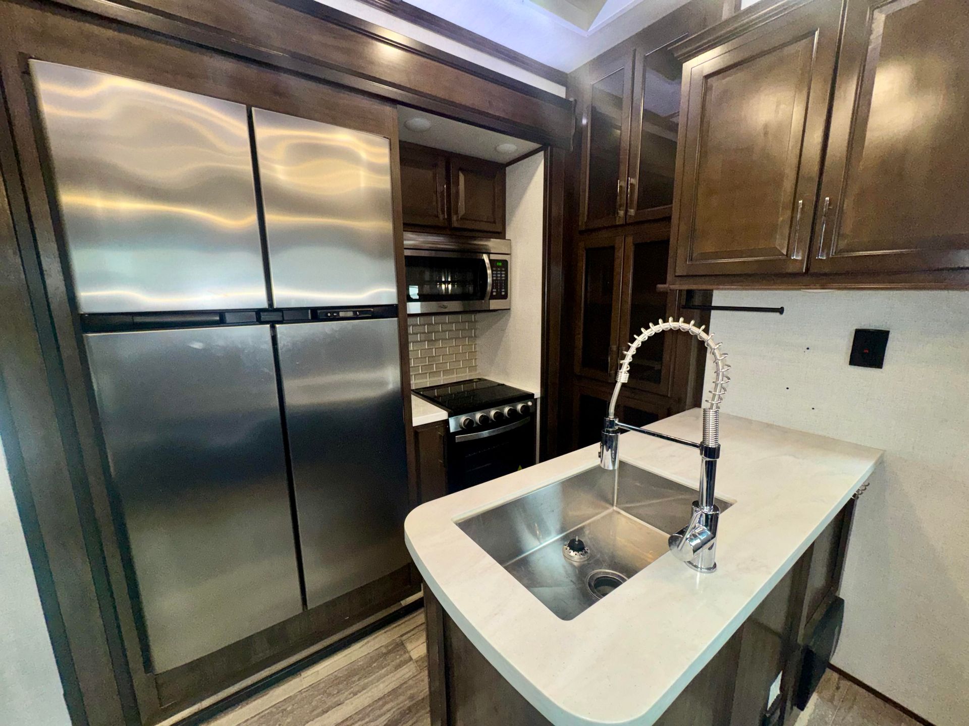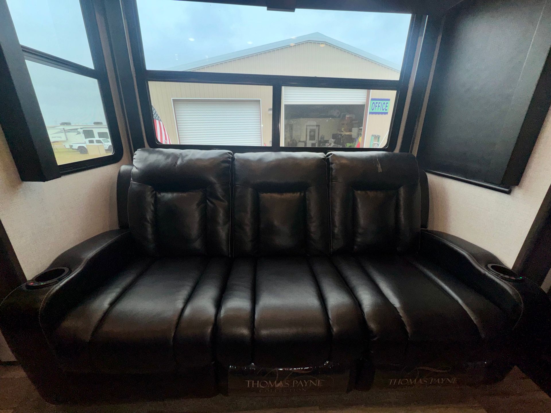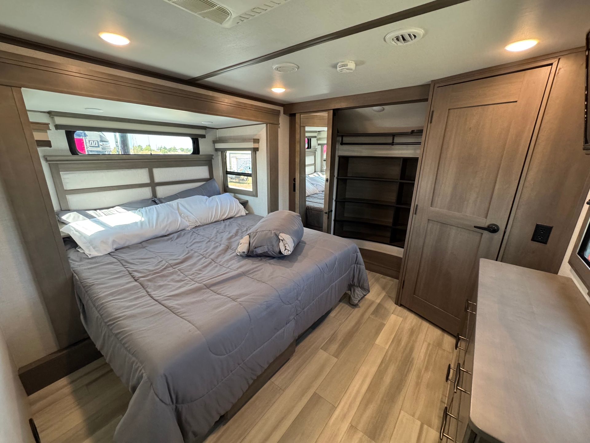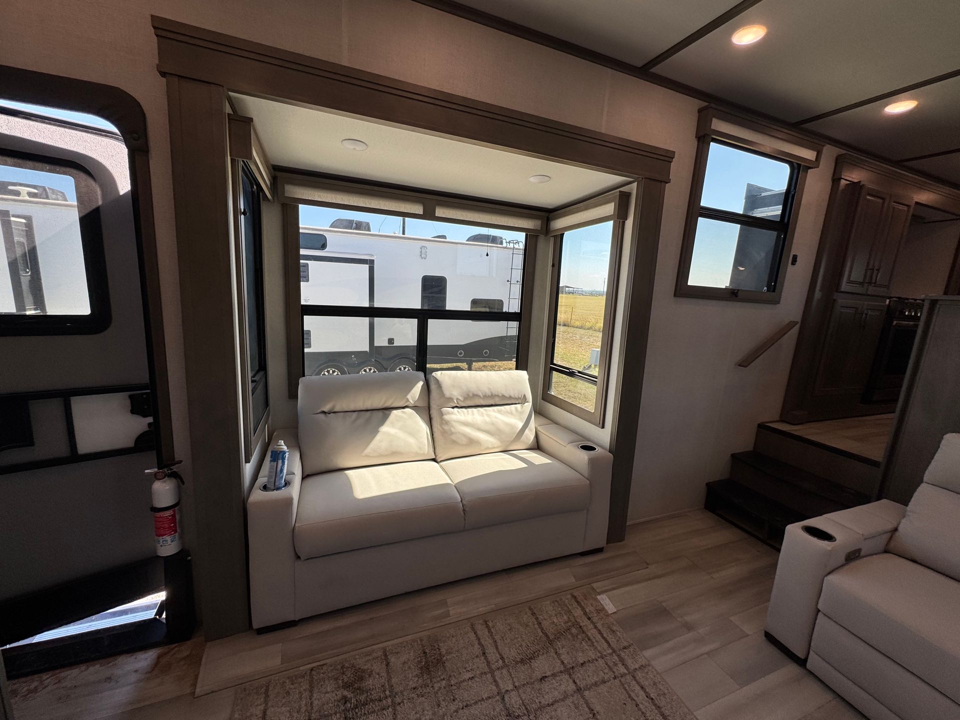 The 2023 Solitude 390RK is a luxury fifth-wheel perfect for renters who want a spacious, residential-style experience on the road. Its unique rear kitchen layout offers a full-size cooking space with plenty of counter room, making it great for longer stays or travelers who enjoy cooking. The living area includes cozy theatre seating and a large entertainment setup, giving you a true home-away-from-home feel. With high-end finishes, generous storage, and a comfortable bedroom and bathroom, this RV provides both comfort and convenience for couples or small families. It’s an ideal choice if you’re looking for a premium, comfortable, and roomy RV getaway.