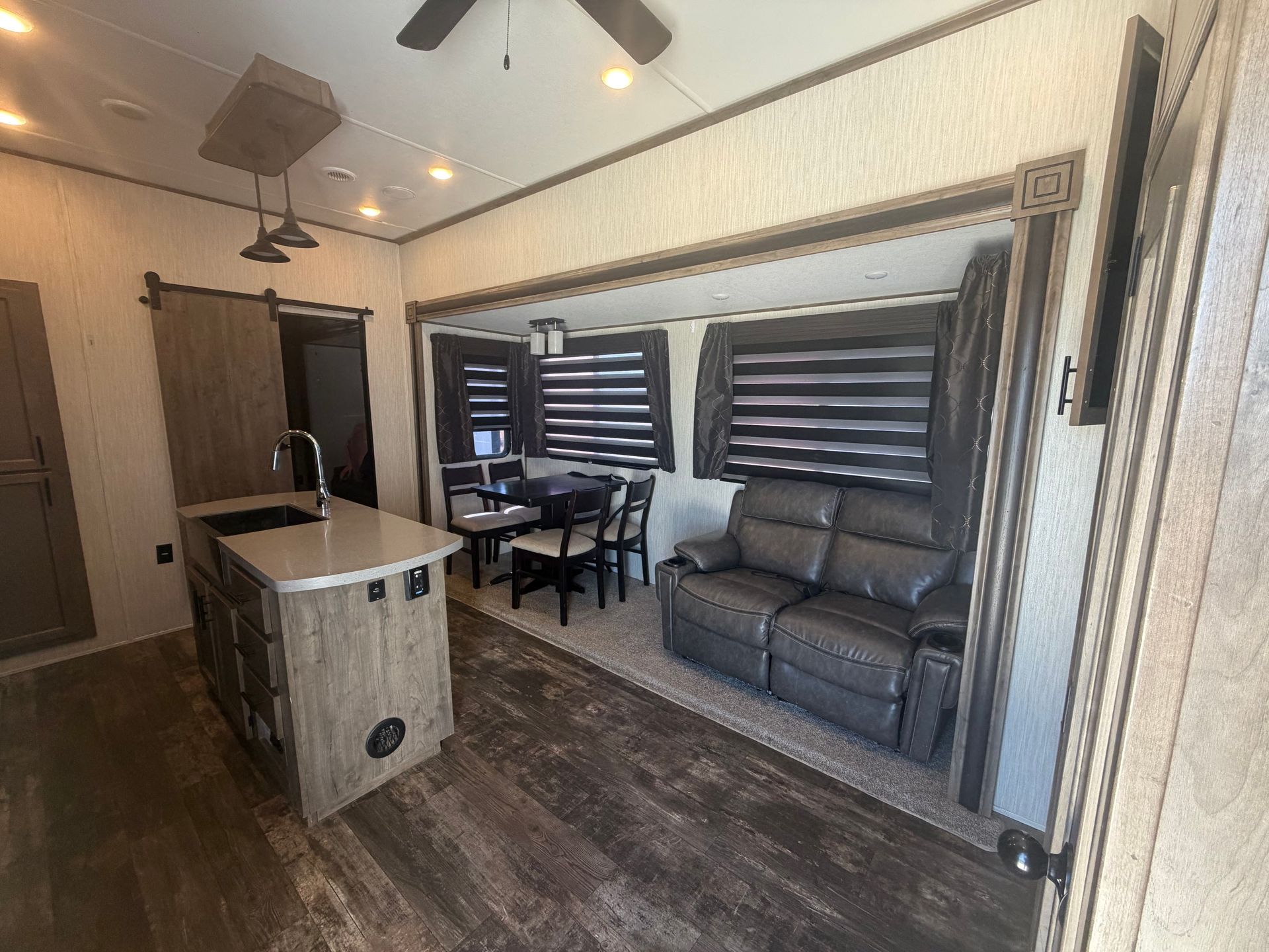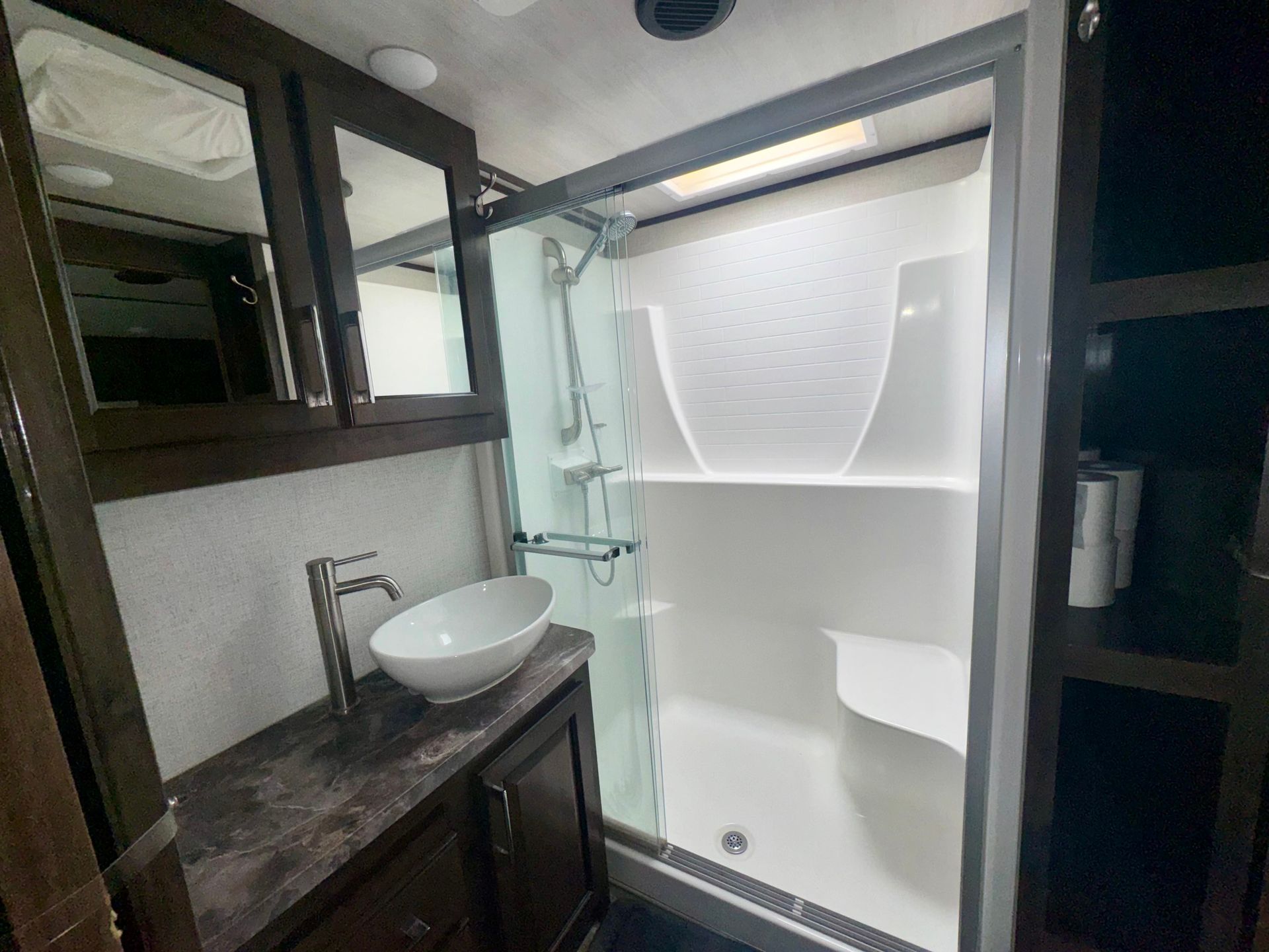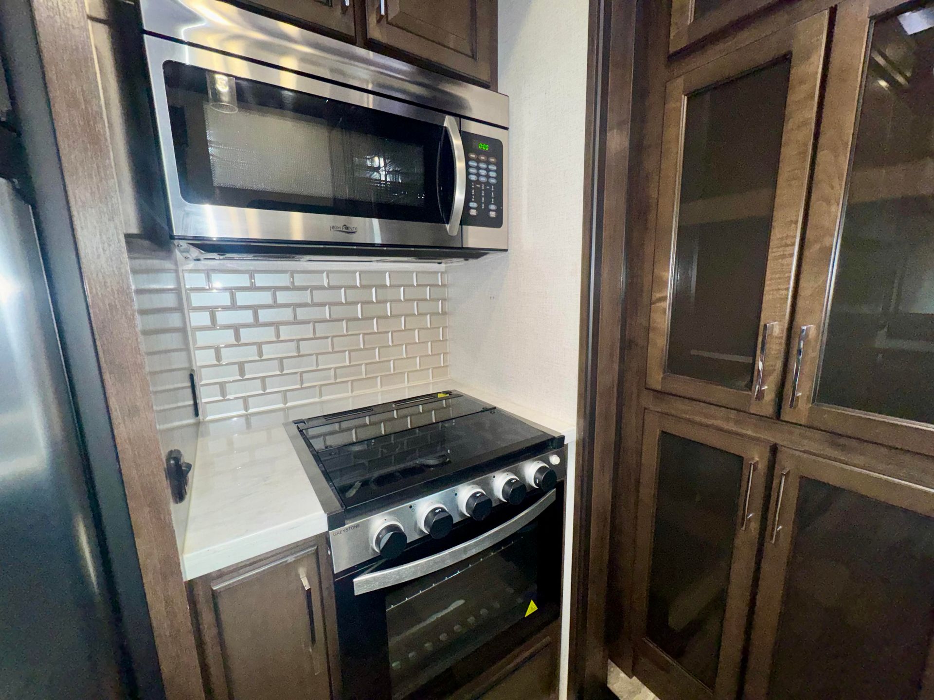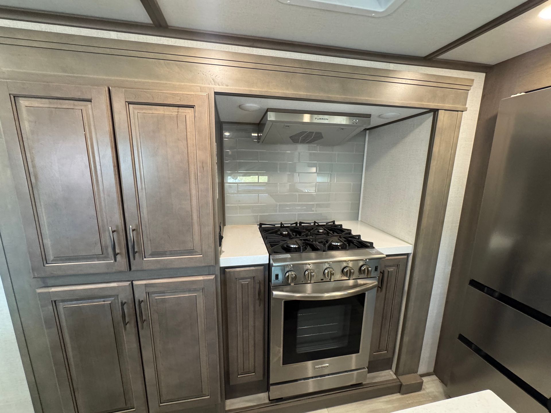 The 2023 Solitude 390RK is a luxury fifth-wheel perfect for renters who want a spacious, residential-style experience on the road. Its unique rear kitchen layout offers a full-size cooking space with plenty of counter room, making it great for longer stays or travelers who enjoy cooking. The living area includes cozy theatre seating and a large entertainment setup, giving you a true home-away-from-home feel. With high-end finishes, generous storage, and a comfortable bedroom and bathroom, this RV provides both comfort and convenience for couples or small families. It’s an ideal choice if you’re looking for a premium, comfortable, and roomy RV getaway.