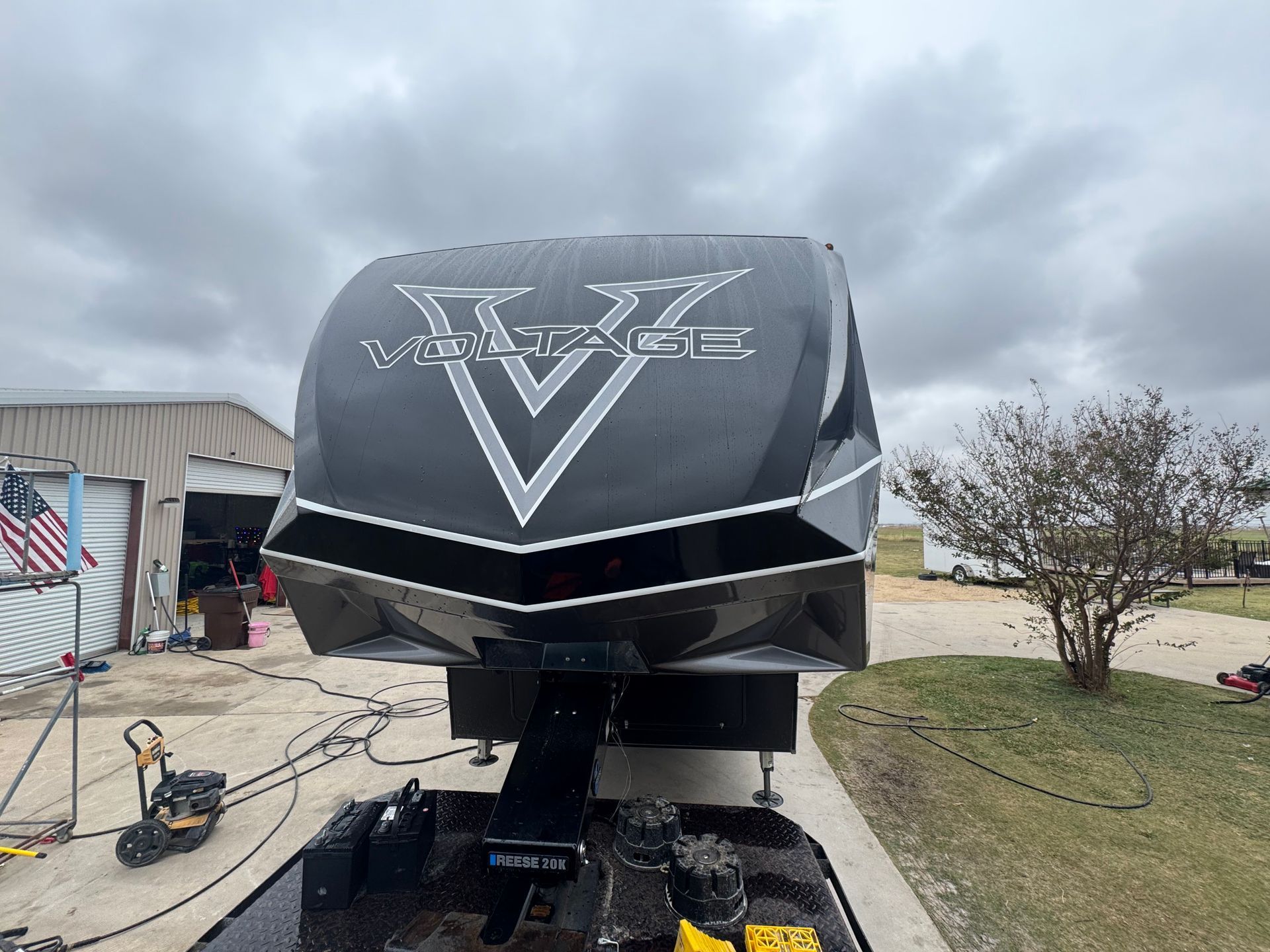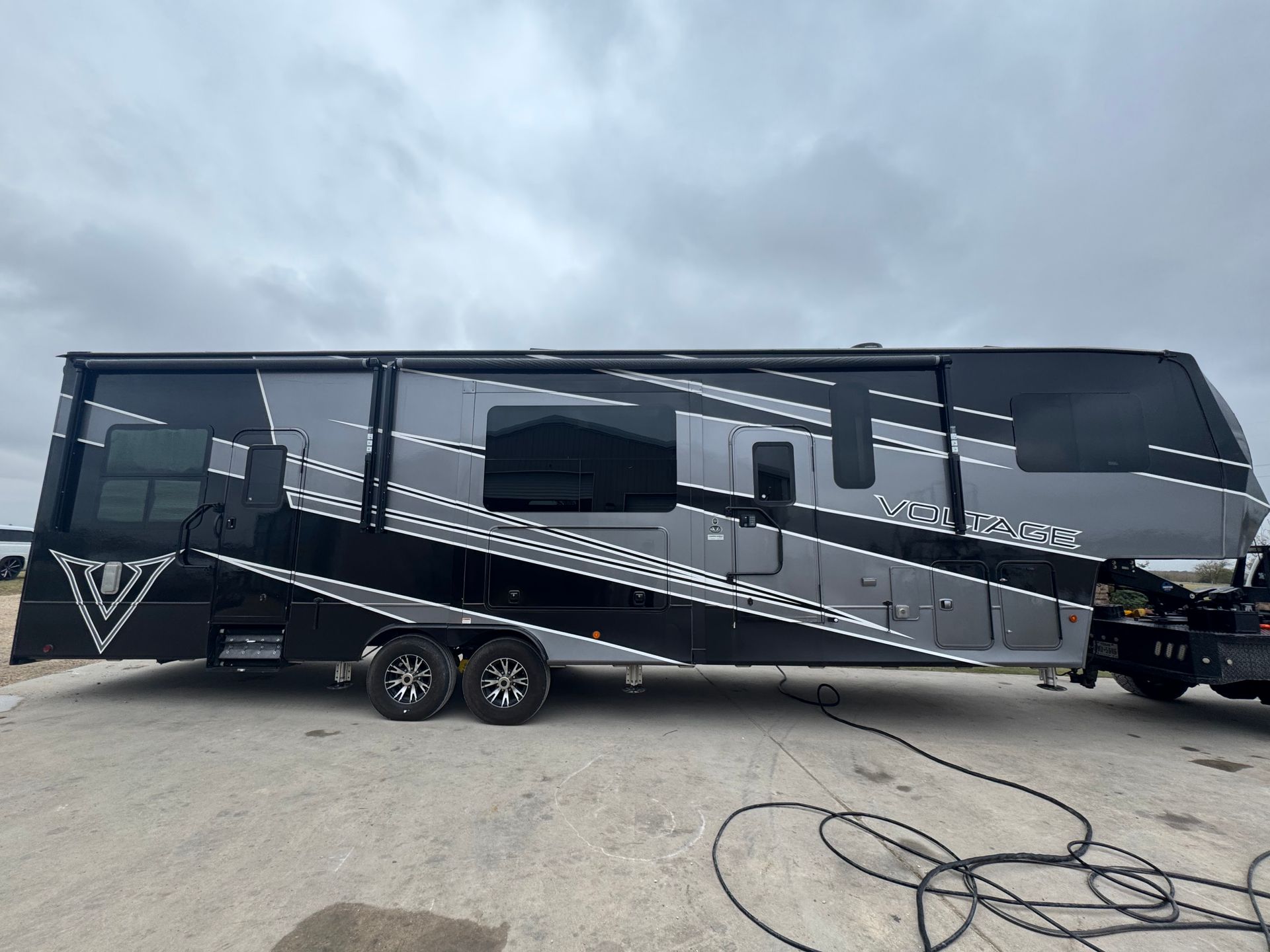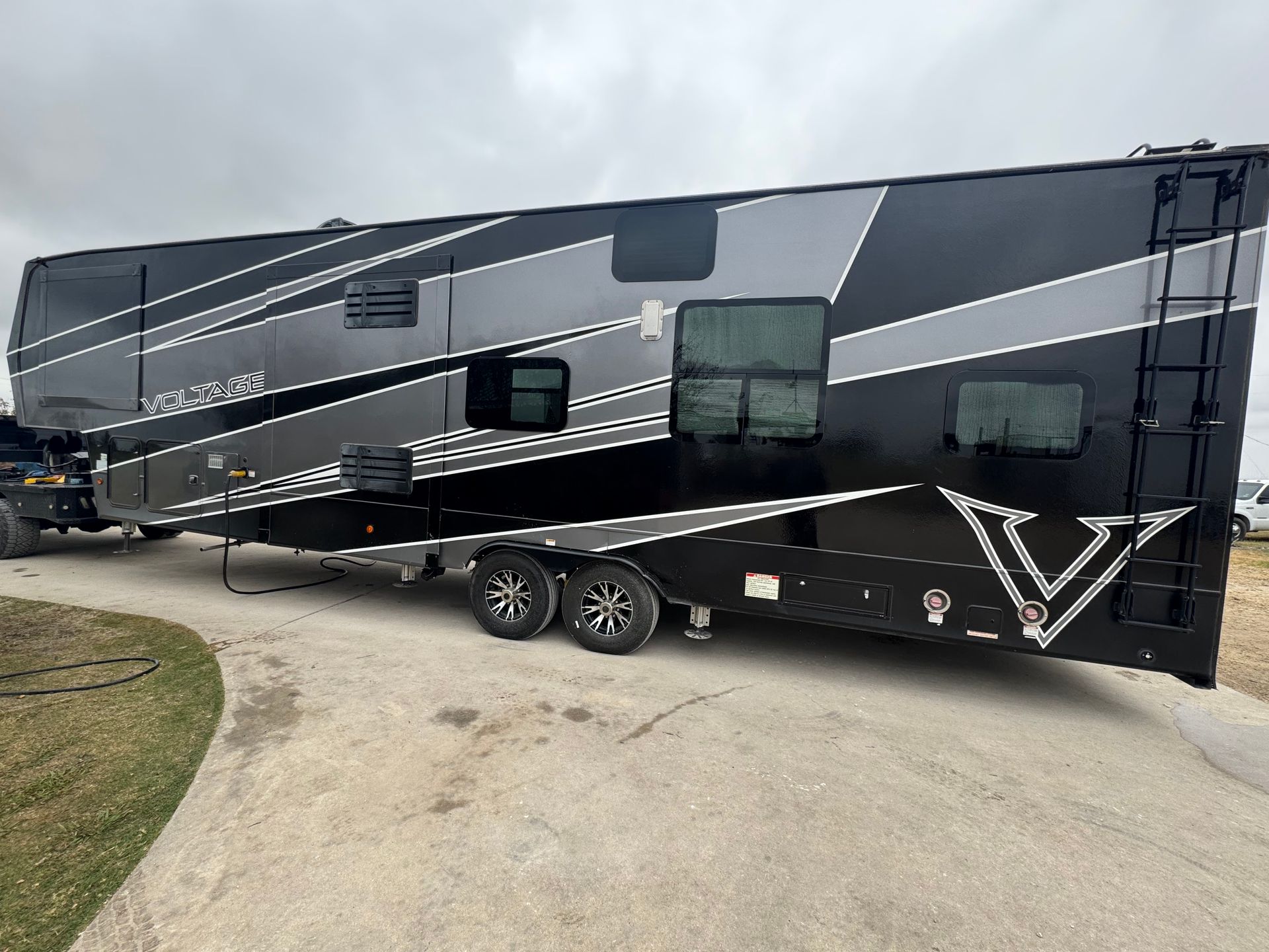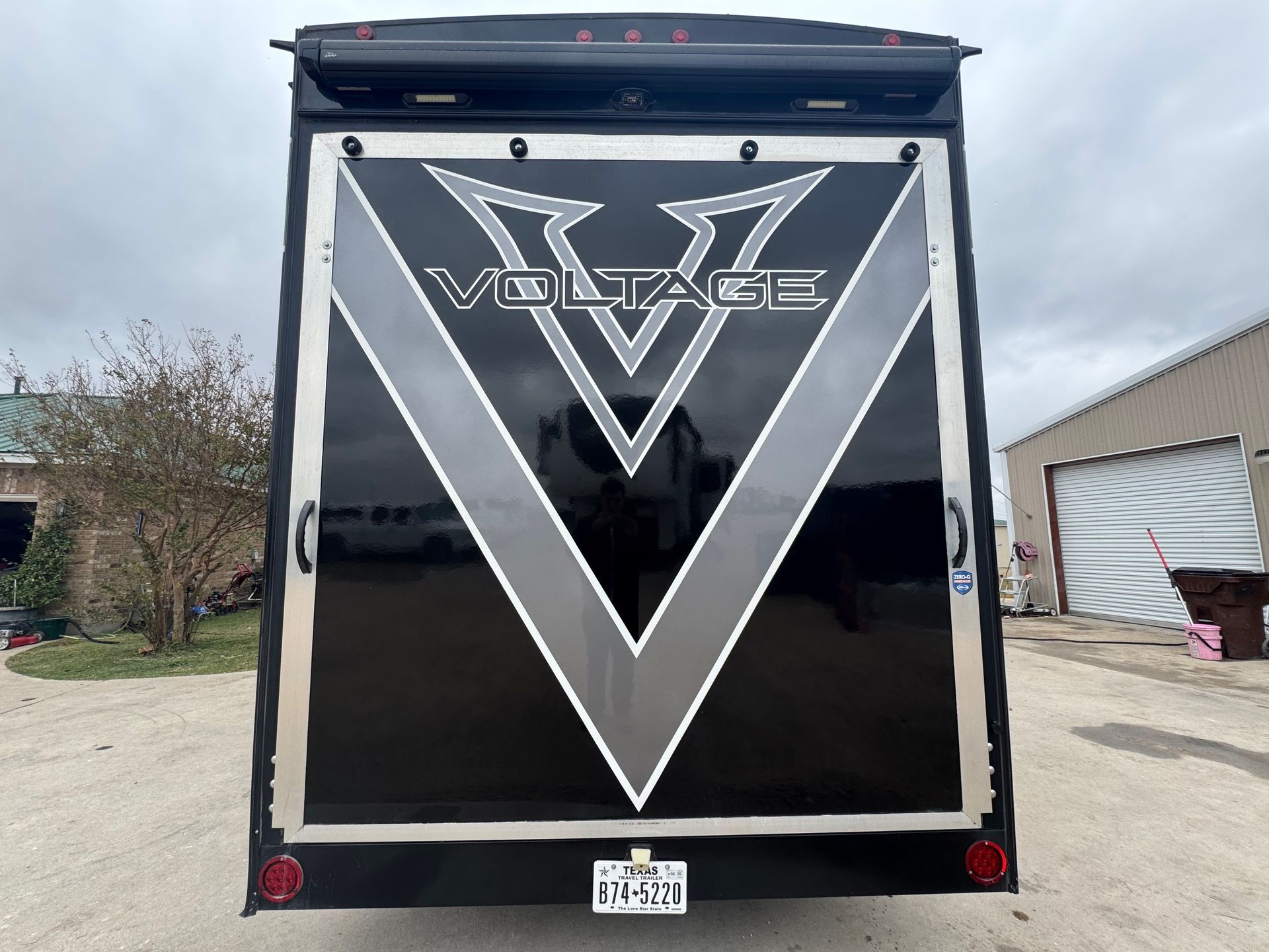 This spacious 2020 Voltage toy-hauler delivers a true home-on-wheels experience, combining rugged hauling capability with upscale residential comfort. Its oversized garage is perfect for bringing along ATVs, bikes, kayaks, or extra gear and easily transforms into an additional sleeping or lounge area. Inside, renters will find a modern kitchen with solid-surface countertops, stainless appliances, and plenty of cabinet space, all flowing into a comfortable living room with a fireplace and large seating area for relaxing after a day of adventure. The dual A/C system, generous fresh-water capacity, and well-designed climate control make it ideal for hot destinations or extended off-grid stays. With multiple sleeping zones, outdoor patio ramp capability, and thoughtful touches throughout, this RV offers an inviting, flexible layout perfect for families, groups, or anyone wanting extra space and comfort on the road.