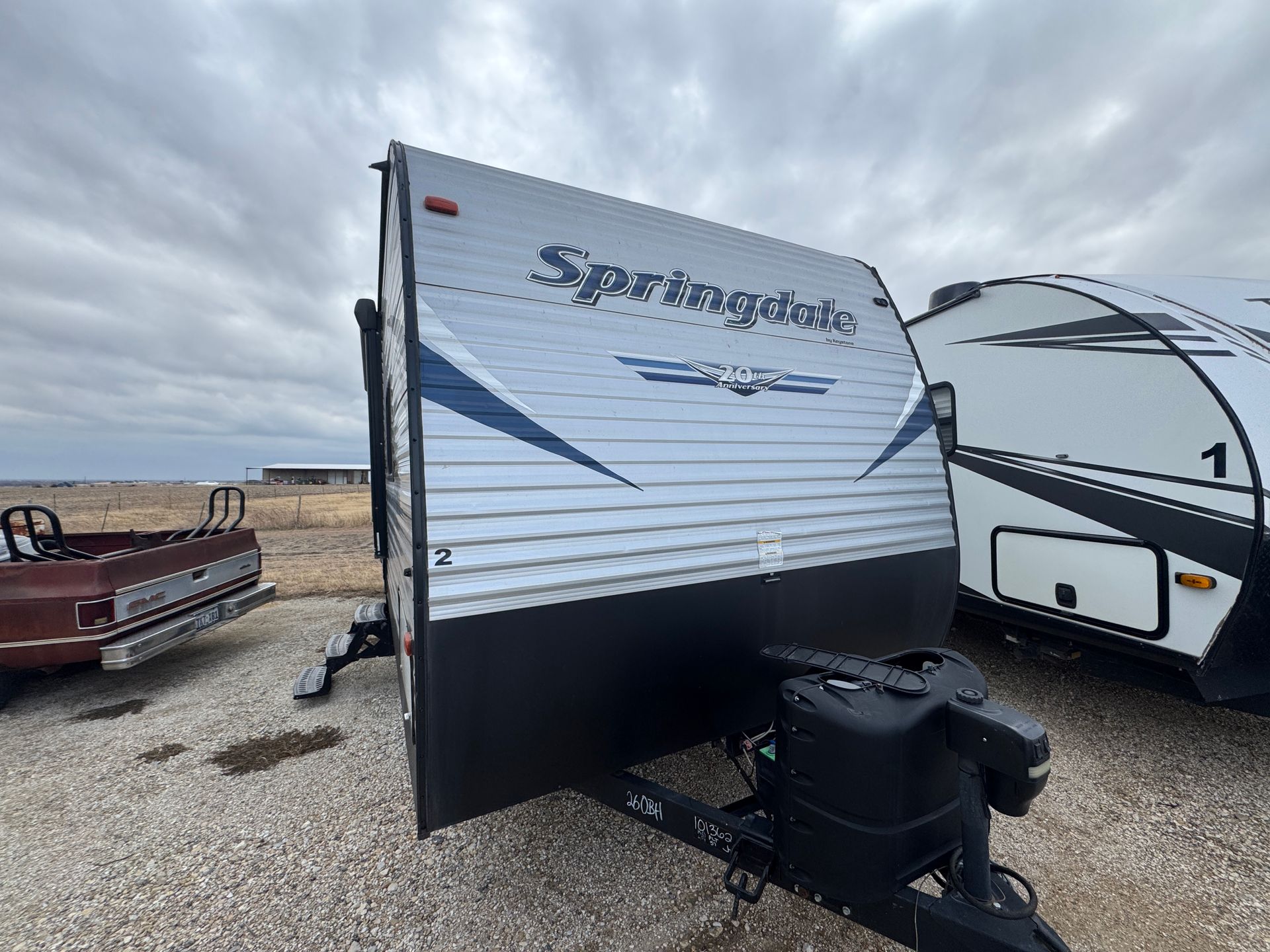 The Springdale SG260BH is a spacious, family-friendly travel trailer designed for comfortable getaways and easy adventures. With sleeping space for up to 8 people, it features a private queen bedroom, double bunk beds, convertible dinette and sofa, plus a roomy slide-out that creates an open living area. The fully equipped kitchen includes a stove, microwave, and refrigerator, while the full bathroom offers a shower, toilet, and sink for added convenience. Perfect for family trips, weekend escapes, or extended vacations, this camper combines comfort, functionality, and plenty of storage so you can enjoy the outdoors without giving up the comforts of home.
