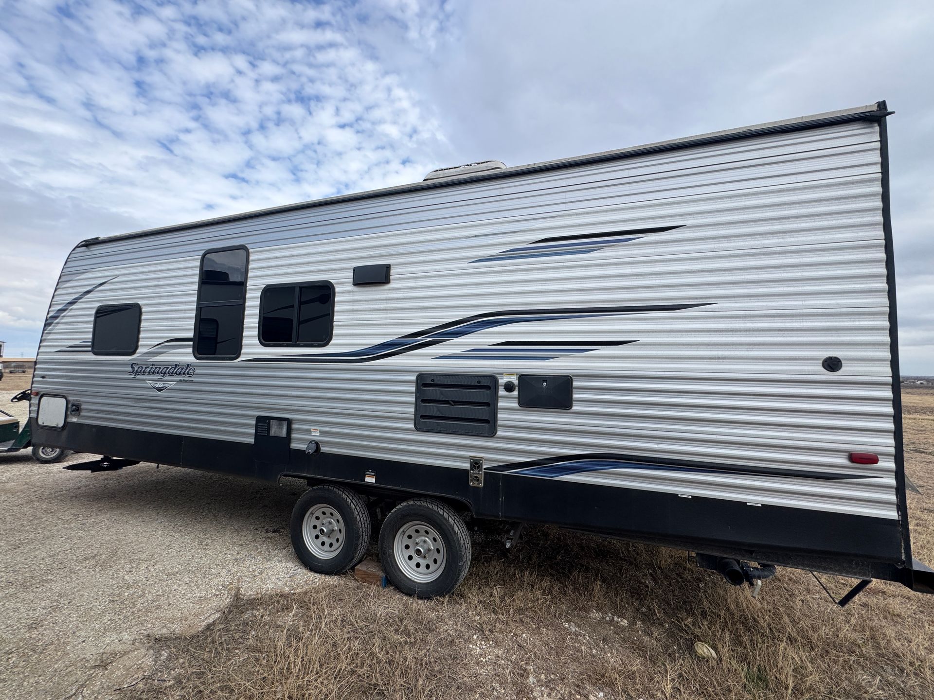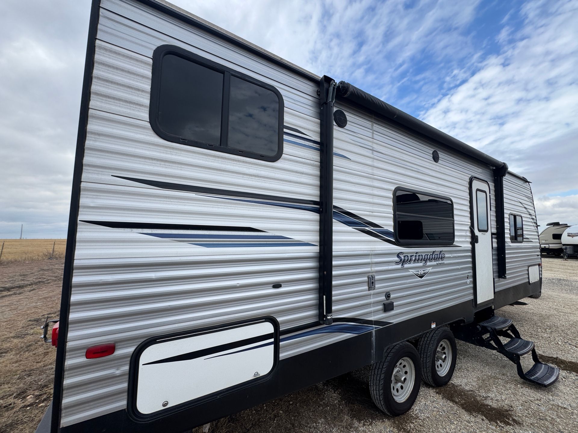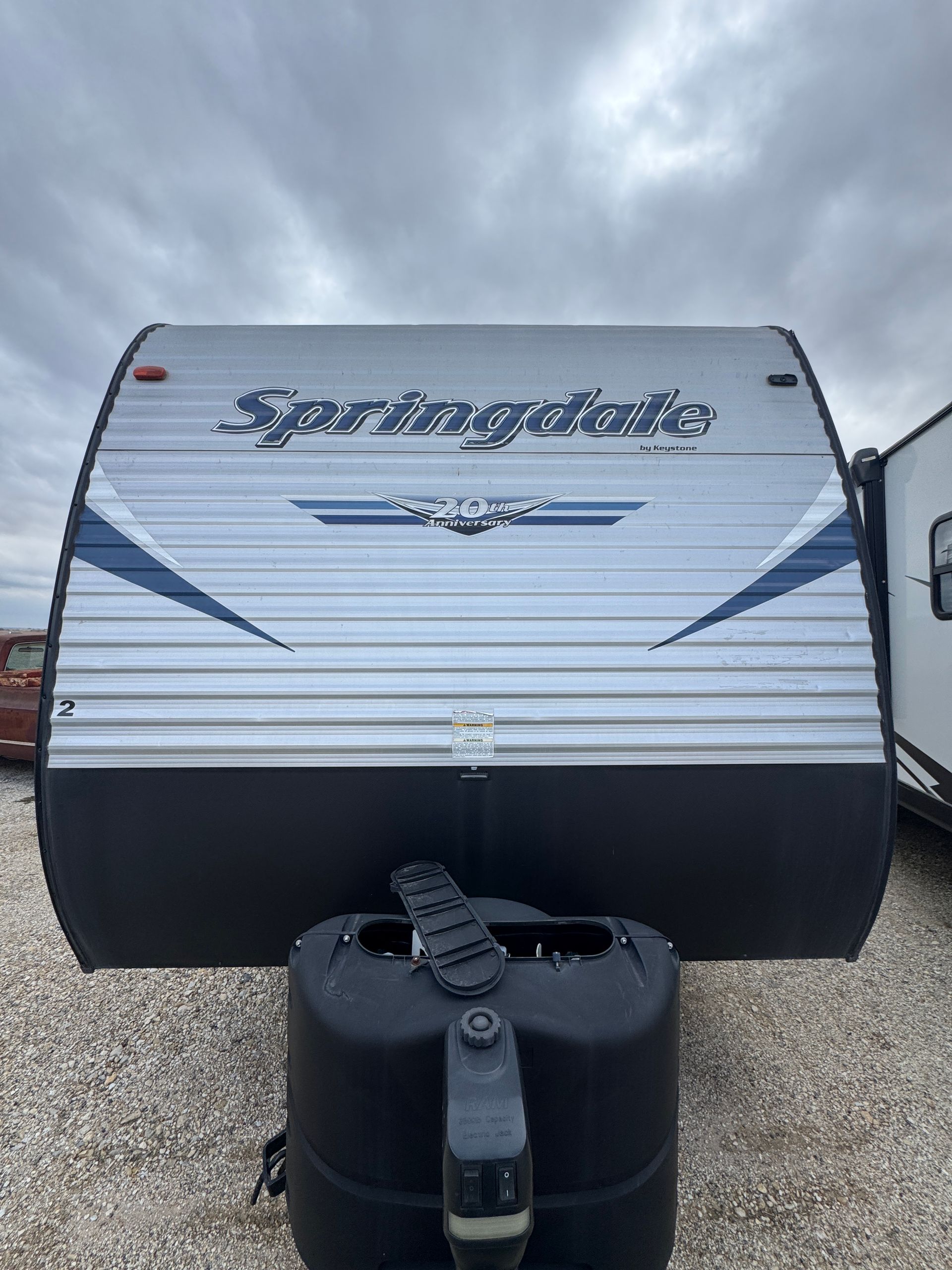 Our 2021 Keystone Springdale 280BH is perfect for relaxing and making memories, with plenty of comfortable sleeping space including a private queen bed, rear double bunks, and additional beds in the sofa and dinette — sleeping up to 9. The open living room with a slide-out gives everyone room to stretch out, relax, and enjoy meals or movie nights together. A fully equipped kitchen with stove, oven, microwave, and refrigerator makes cooking easy and enjoyable wherever you camp. Spend your days exploring and your evenings unwinding under the power awning or inside the cozy living space. This camper is all about comfort, convenience, and enjoying the outdoors together.