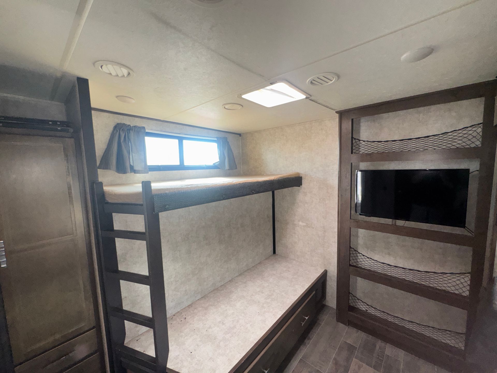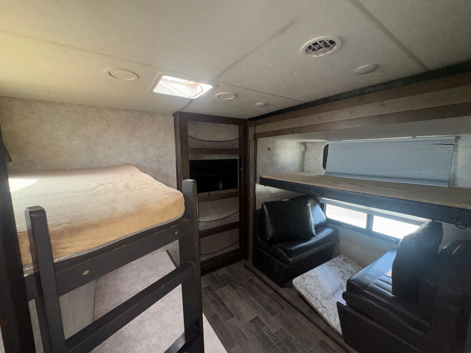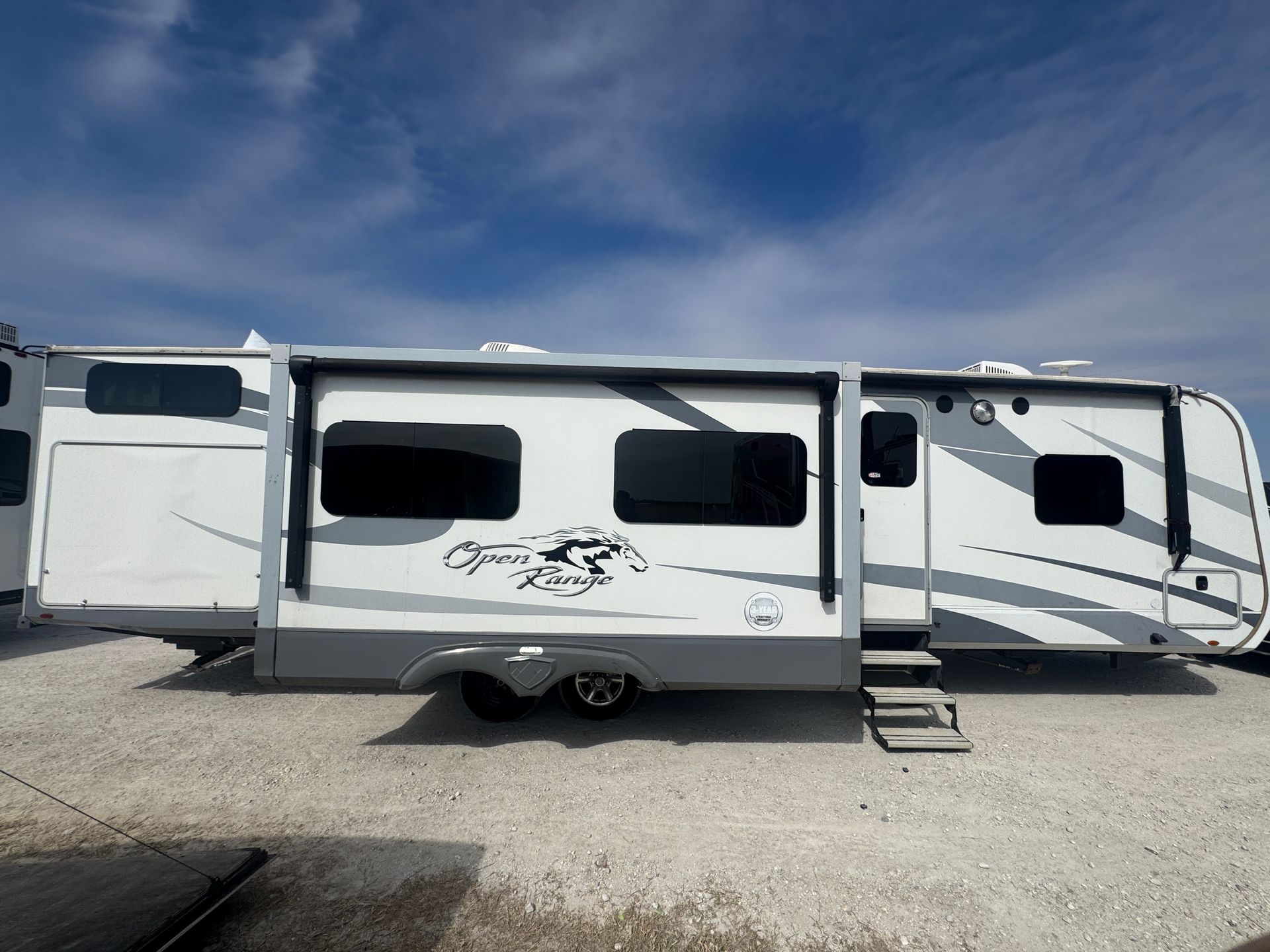 This 28-foot travel trailer offers a well-designed layout with a slide-out for extra space. The private queen master provides a cozy retreat, while two bunks offer additional sleeping accommodations. A full kitchen and bathroom ensure all the essentials are covered, and with two A/C units, you’ll stay cool and comfortable in any weather. Clean, well-maintained, and ready for your next adventure!