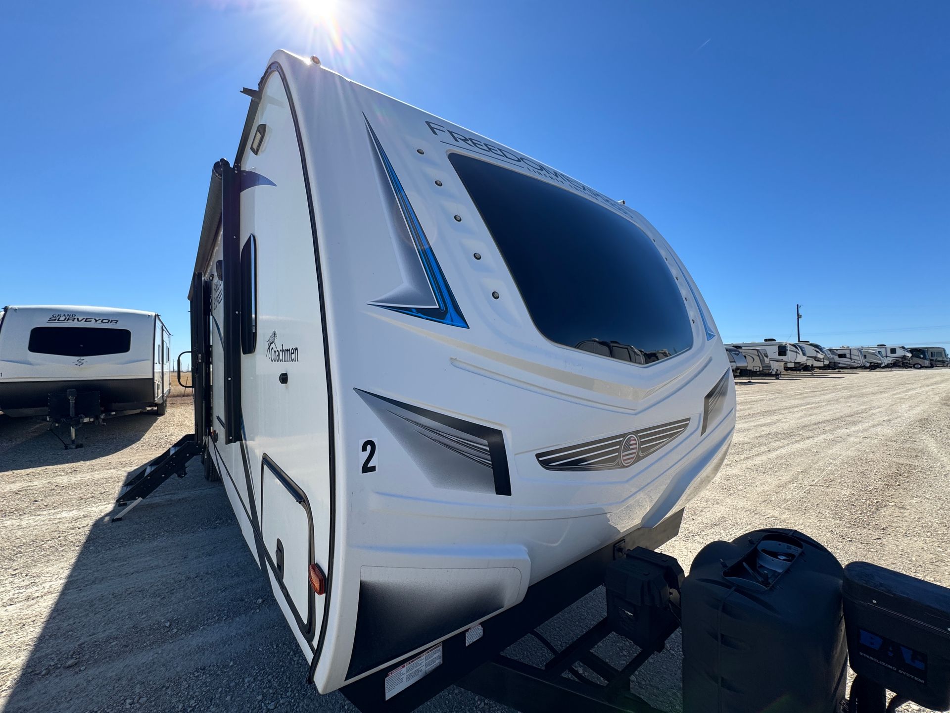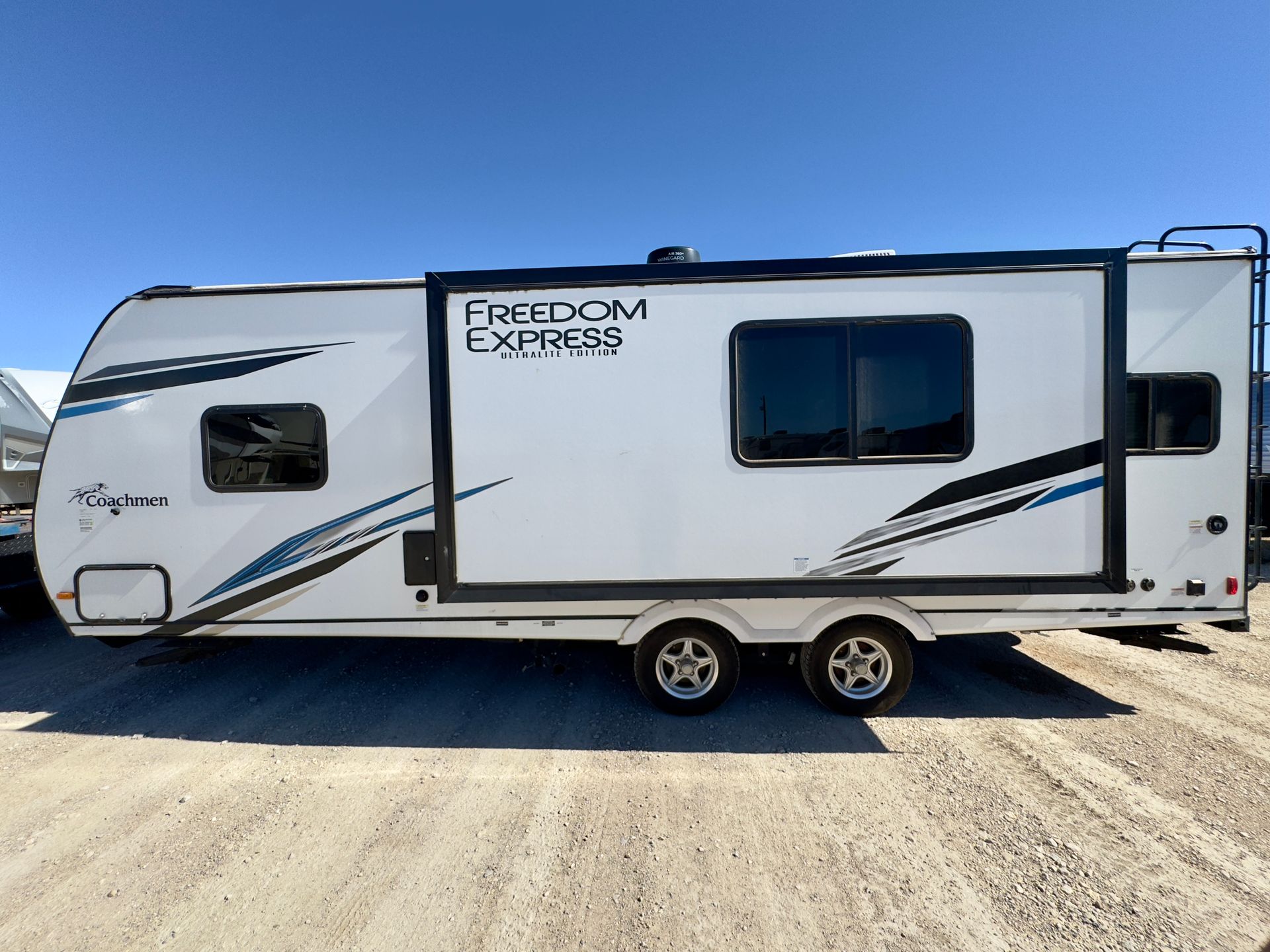 The 2021 Coachmen Freedom Express 320BHDSLE offers a versatile layout well suited for travel. A separate front bedroom with a queen bed and a dedicated bunkhouse provide multiple sleeping areas with added privacy. Two slide-outs expand the main living space, creating a comfortable area for dining and relaxation. This travel trailer features a full indoor kitchen, full bathroom, and an exterior kitchen for added convenience when enjoying time outdoors. Climate control, generous storage, and a power awning with LED lighting complete a practical and comfortable setup for both short trips and extended stays.