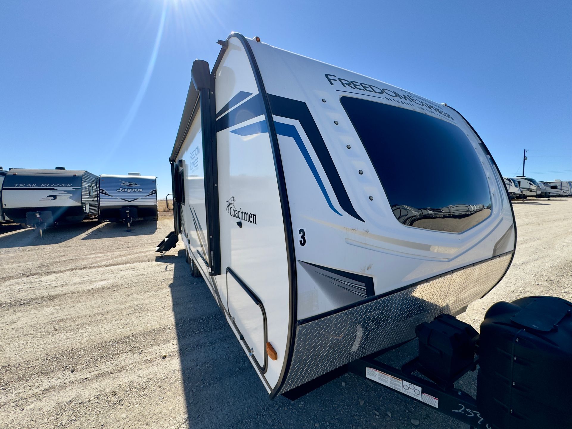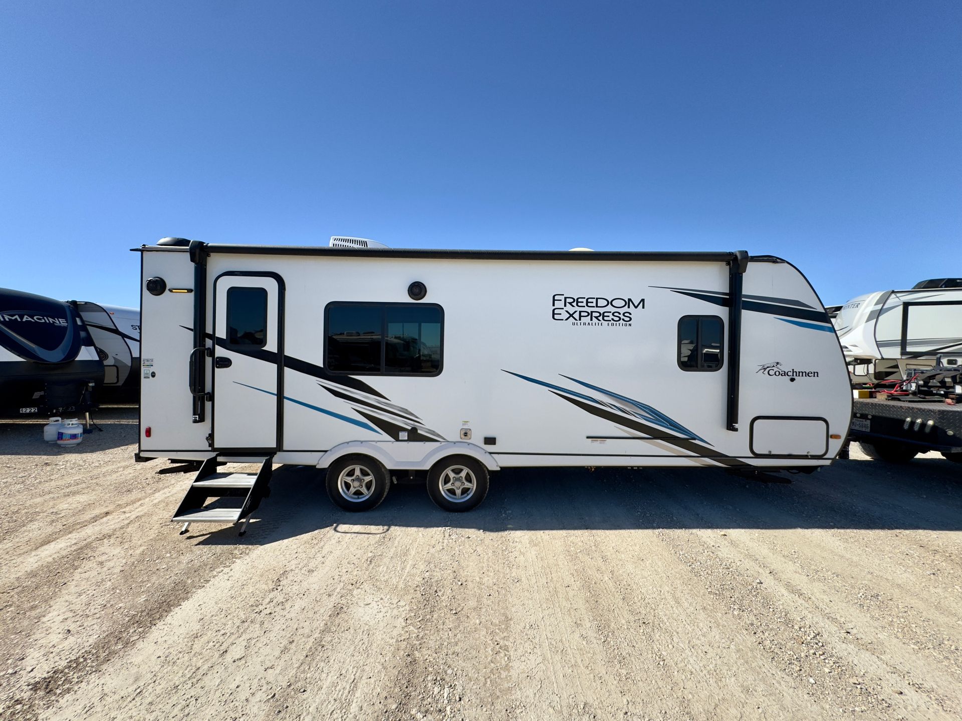 Enjoy comfort and convenience on the road with our 2022 Coachmen Freedom Express 246RKS. This easy-to-tow travel trailer features a spacious rear kitchen, a large slide-out for extra living space, and a private queen bedroom up front. The RV includes a fully equipped kitchen, full bathroom, air conditioning, heat, and a power awning with LED lighting—perfect for relaxing indoors or out.