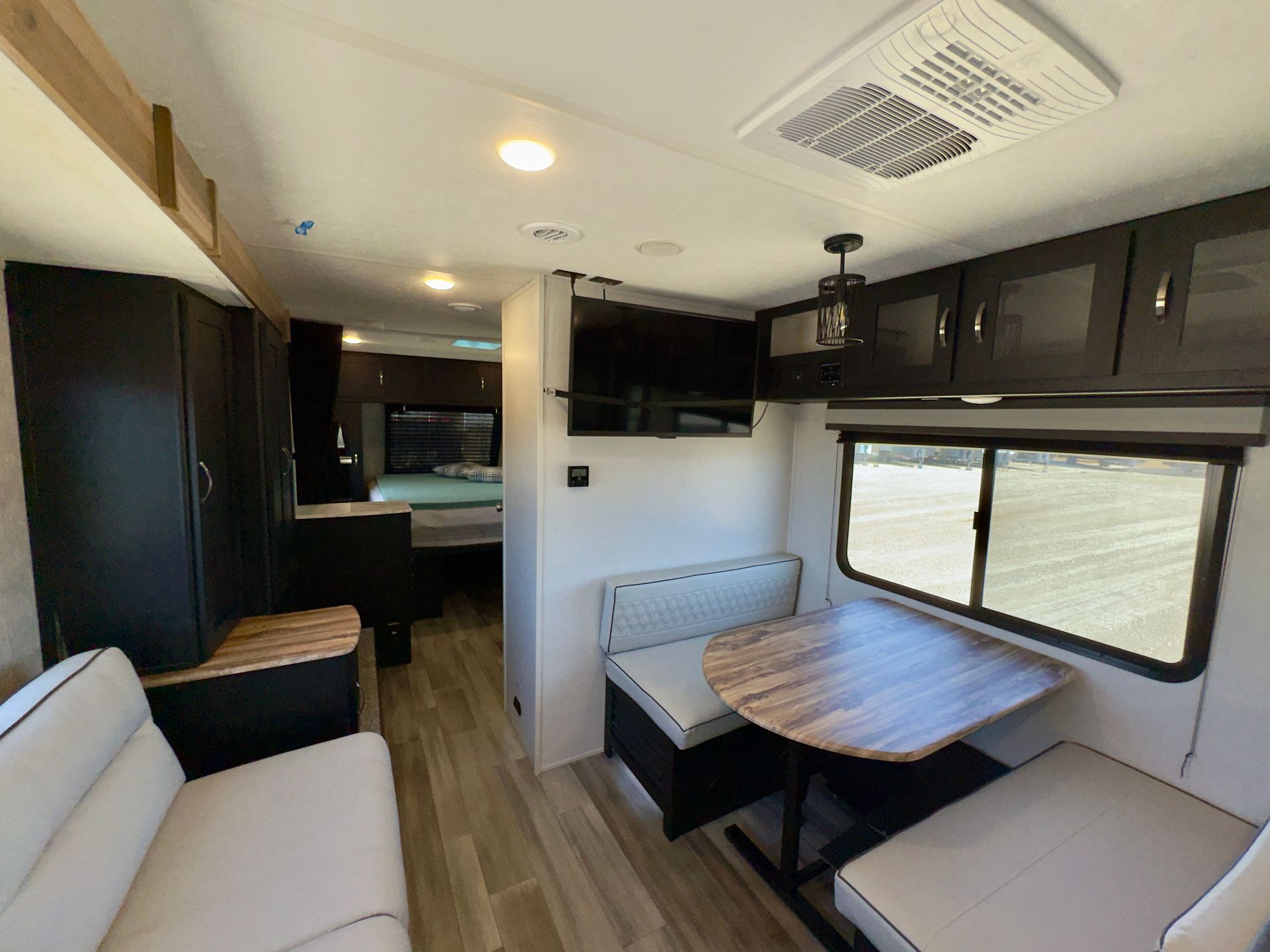 This beautifully remodeled 2004 Airstream offers the perfect blend of vintage charm and modern comfort. Inside, you'll find a private queen bedroom, a spacious living and kitchen area with all the essentials, and a full bathroom with a shower, toilet, and sink. The interior is designed for relaxation, with thoughtful touches that make it feel like home. Equipped with both AC and heat, this space stays comfortable year-round, whether you're using it as a retreat or a mobile greenroom.