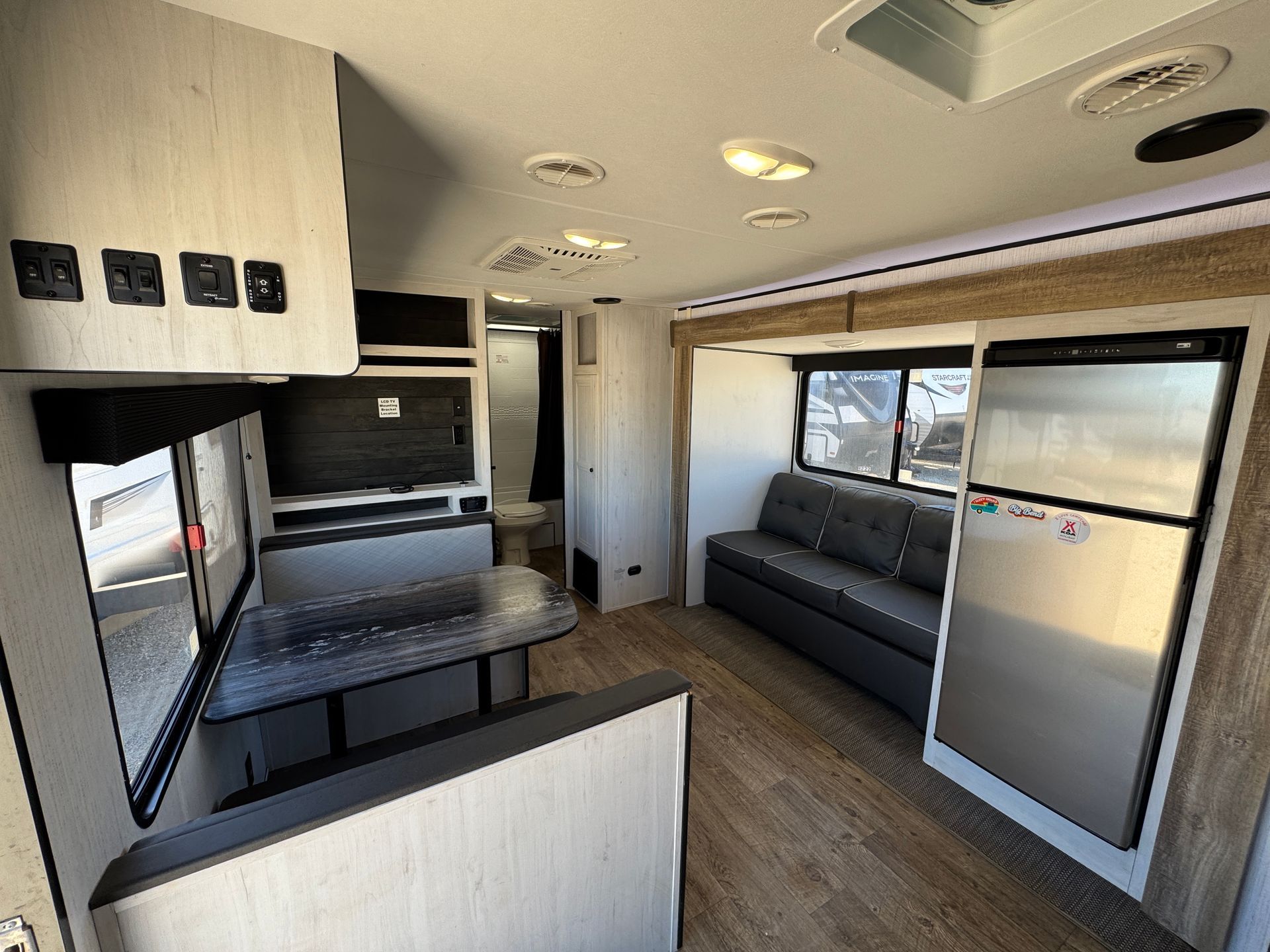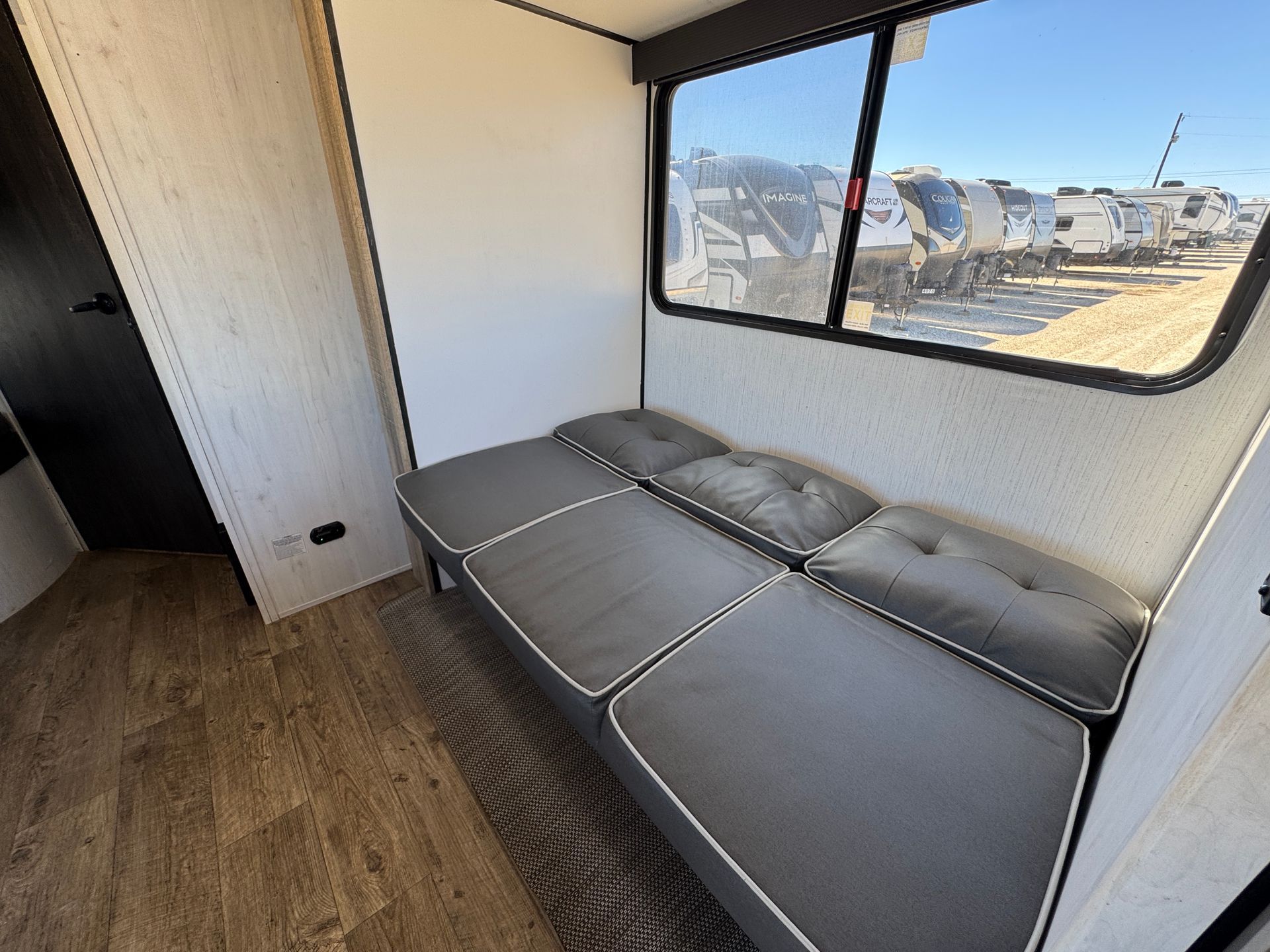 The 2022 Imagine 3100RD is a spacious and modern travel trailer perfect for families or groups looking for comfort on the road. Its rear living floor plan features large windows, theater seating, and a dinette, creating a bright and inviting space to relax or entertain. The fully equipped kitchen includes a large refrigerator, stove, microwave, and plenty of counter and storage space, making meal prep simple and convenient. A private front bedroom provides a comfortable retreat, while the rear bath and additional sleeping areas make it ideal for larger groups. With thoughtful design, quality finishes, and plenty of storage, this RV offers a home-like experience wherever your adventure takes you.