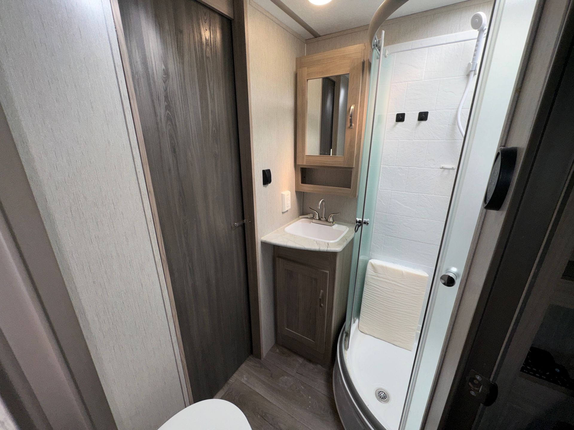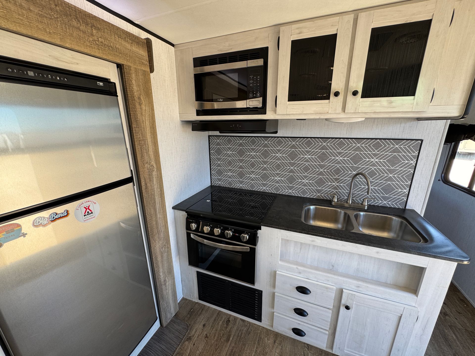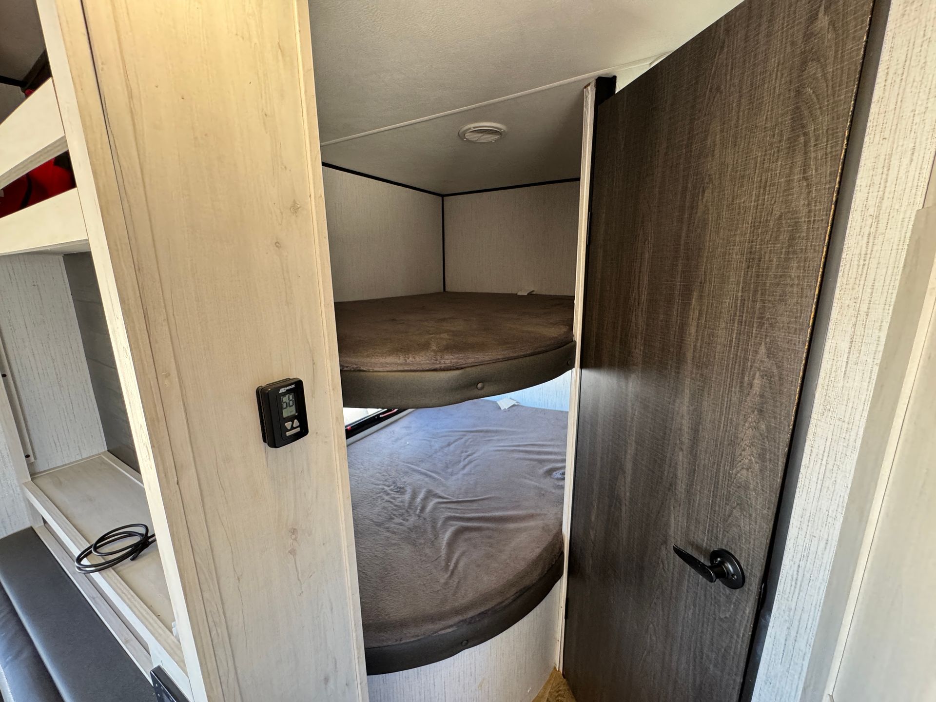 The 26-foot travel trailer offers simple and convenient space with a next-to-new Travel Trailer. One slide for ample space. Private queen master with a door. Two full-size bunks beds for easy access. A full kitchen and bath to complete the layout. A/C and heat.